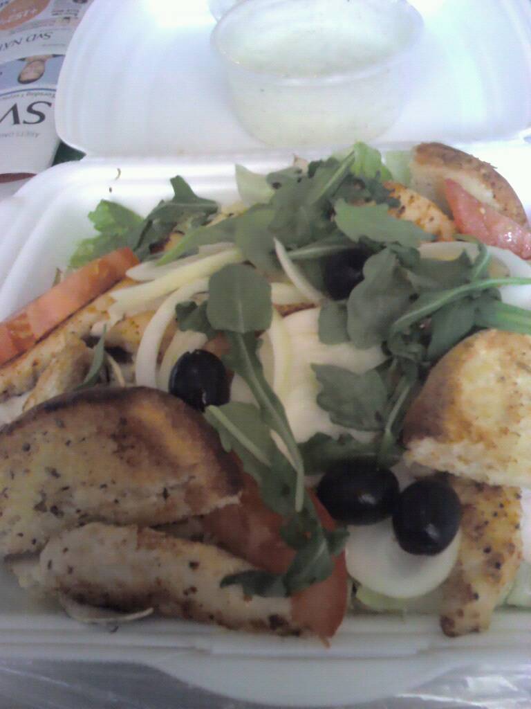 Glömde att ta fram en låda med mat från frysen. Kycklingsallad från Sofies grill blev det till middag.